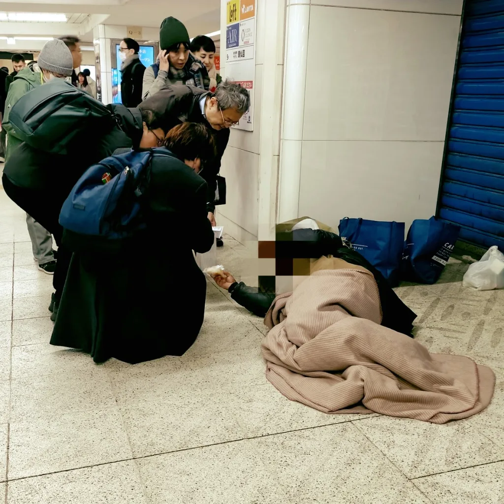 12月24日(水)は 夜回りでした。池袋駅前公園に49人の方が並ばれ、駅の中や路上、公園などでは29名の方にお会いし、おにぎり、パン、ご寄付でいただいた金柑などをお渡ししました。生活相談は3件でした。次回の夜回りは12月31日(水)に実施します。