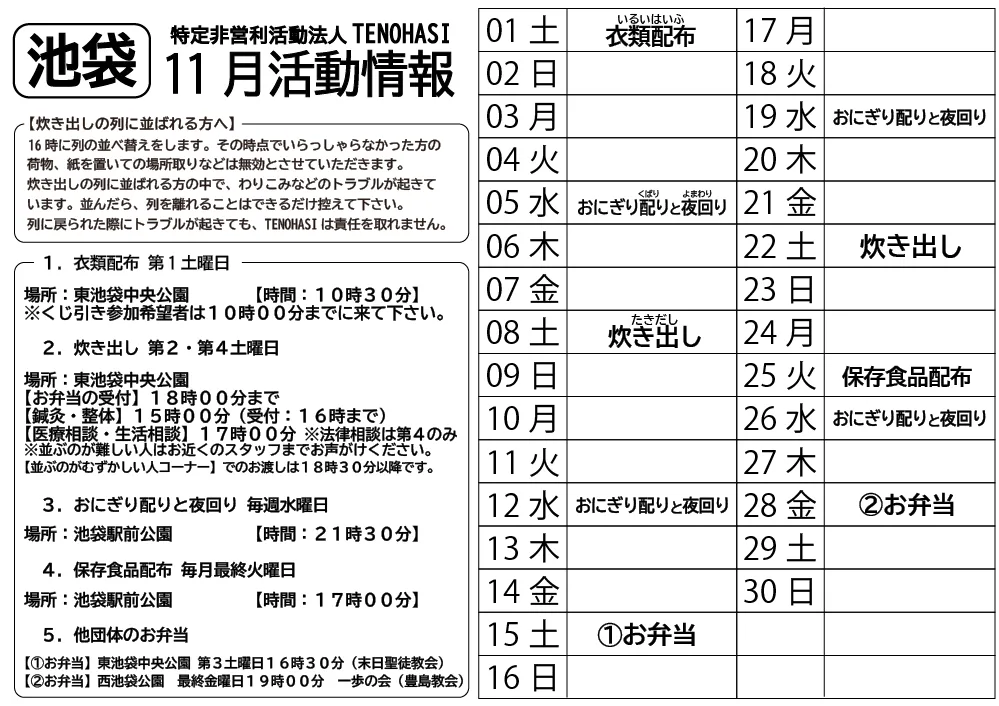 TENOHASIの活動情報ほか、池袋で活動する他団体の情報もお知らせしています。