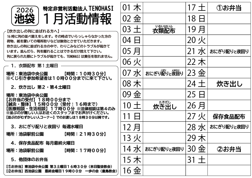 TENOHASIの活動情報ほか、池袋で活動する他団体の情報もお知らせしています。